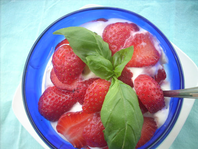 Terminar con frutillas en trozos o en mitades y adornar con albahaca.
