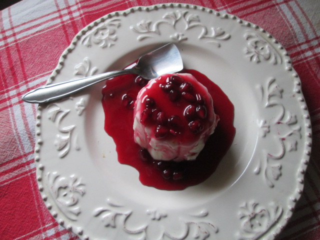 He hecho varias panacottas pero esta con la salsa de granadas me fascinó apenas la vi.